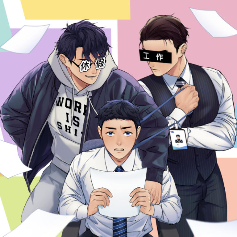 準備踏入職場的社畜,本擔心畢業即失業的他,在多次的面試後,終於獲得了大公司的錄取通知,突來的好消息讓他開始在工作與休假間左右為男。Today's office worker is caught between Work and Day Off... quite literally torn between two men.